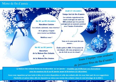 Prolonger cette période de fête et se ressourcer avant la rentrée dans une ambiance cocooning : tel est le souhait de l’équipe d’animation !