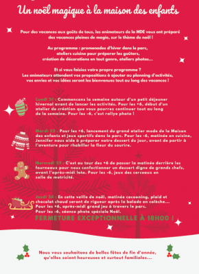 Pour des vacances aux goûts de tous, les animateurs de la MDE vous ont préparé des vacances pleines de magie, sur le thème de Noël !