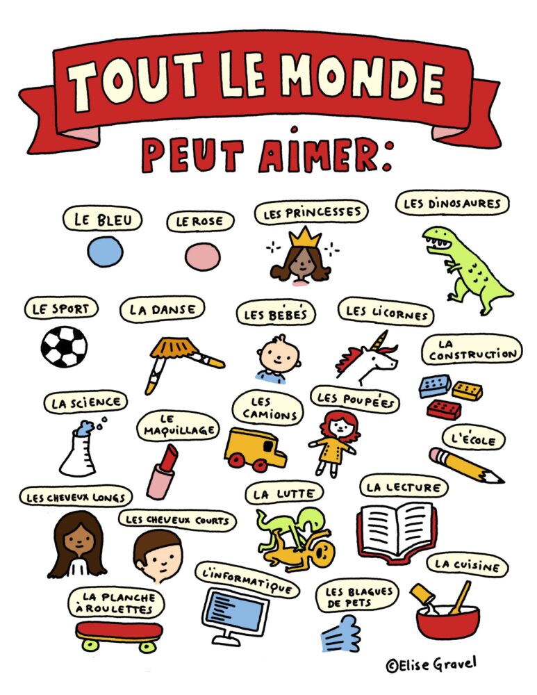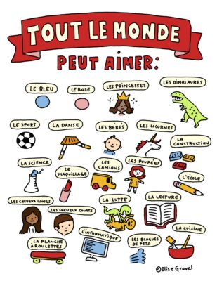 Au delà de ce questionnement interne à notre organisation, nous souhaitons sensibiliser les enfants et les familles à cette question de l’éducation genrée et aux effets de cette construction sociétale que nous alimentons toutes et tous. Bien souvent de manière inconsciente.