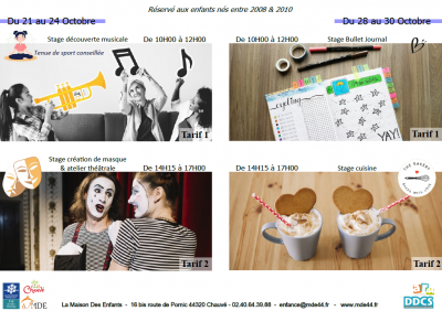 Au vue du succès des stages « 9/11 ans » sur le mois de Juillet, le CA de l’association a décidé de poursuivre l’aventure sur les petites vacances.