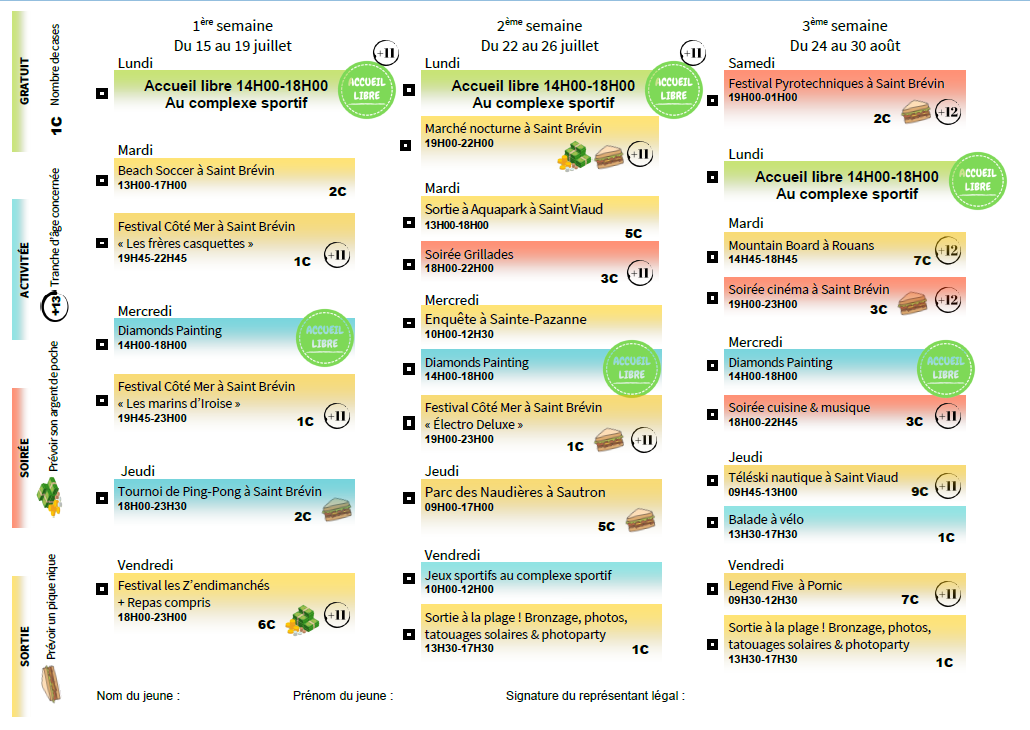 Attention, les places sont limitées sur la plupart des activités, ne tardez pas à valider vos réservations.