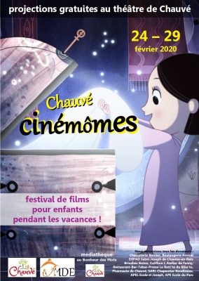 Première édition du festival « Chauvé Cinémômes », du 24 au 29 Février. Une programmation cinématographique adaptées aux enfants et à la découverte du septième art. Entrée gratuite et ouverte à tous (Âge en fonction des séances).