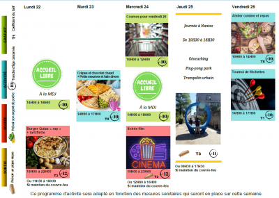 À compter de ce mercredi 6 janvier, la « Maison des Jeunes » réouvre sur les temps d' »Accueil libre » du mercredi, de 14h à 18h.