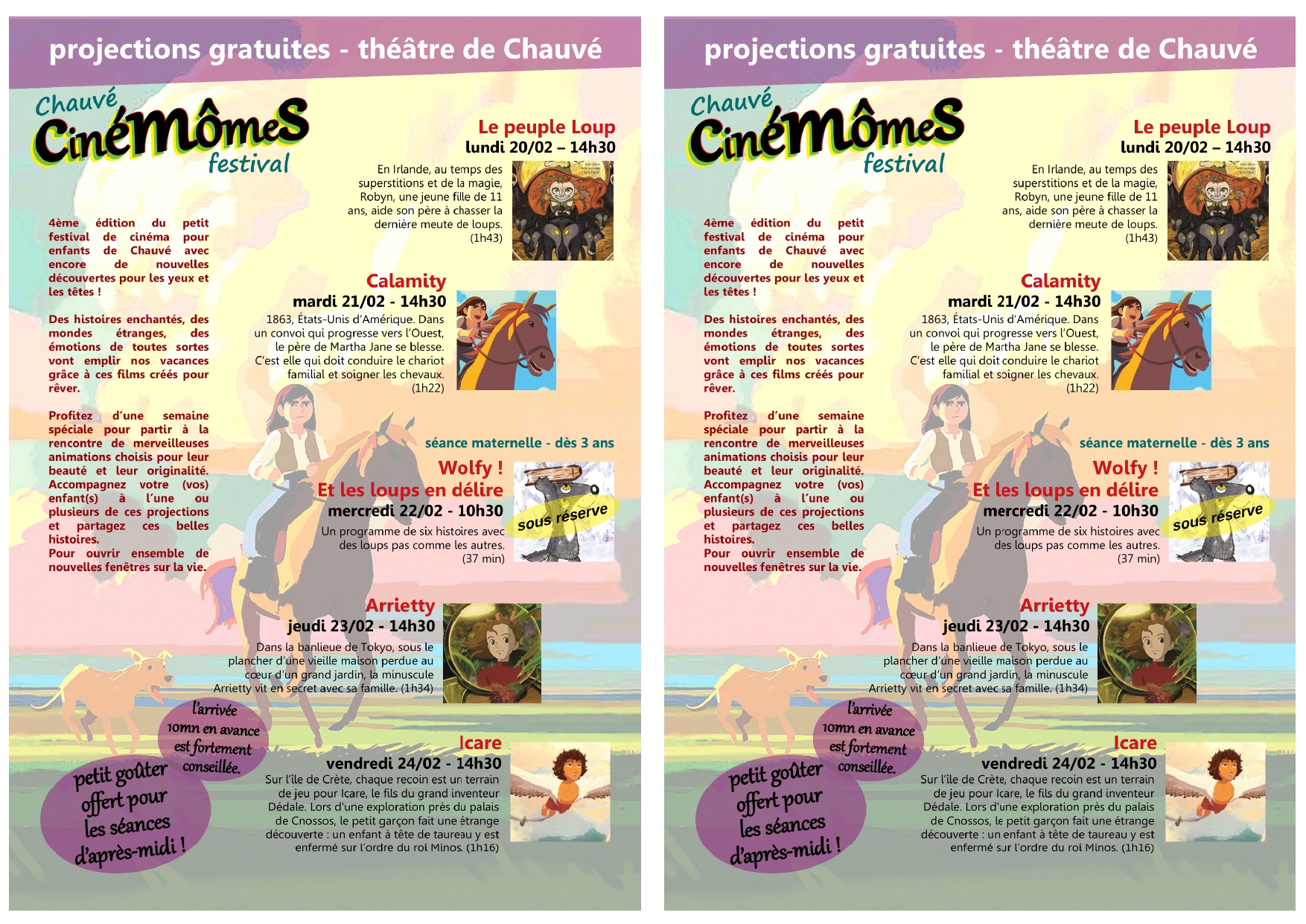 * La soirée du 16 février n’apparaît pas dans le détail de la programmation : À 19h30, au théâtre de Chauvé, projection du film « Forrest Gump« . Cette projection est gratuite et ouverte à toutes et tous. Plus d’informations sur le film, en cliquant ici.