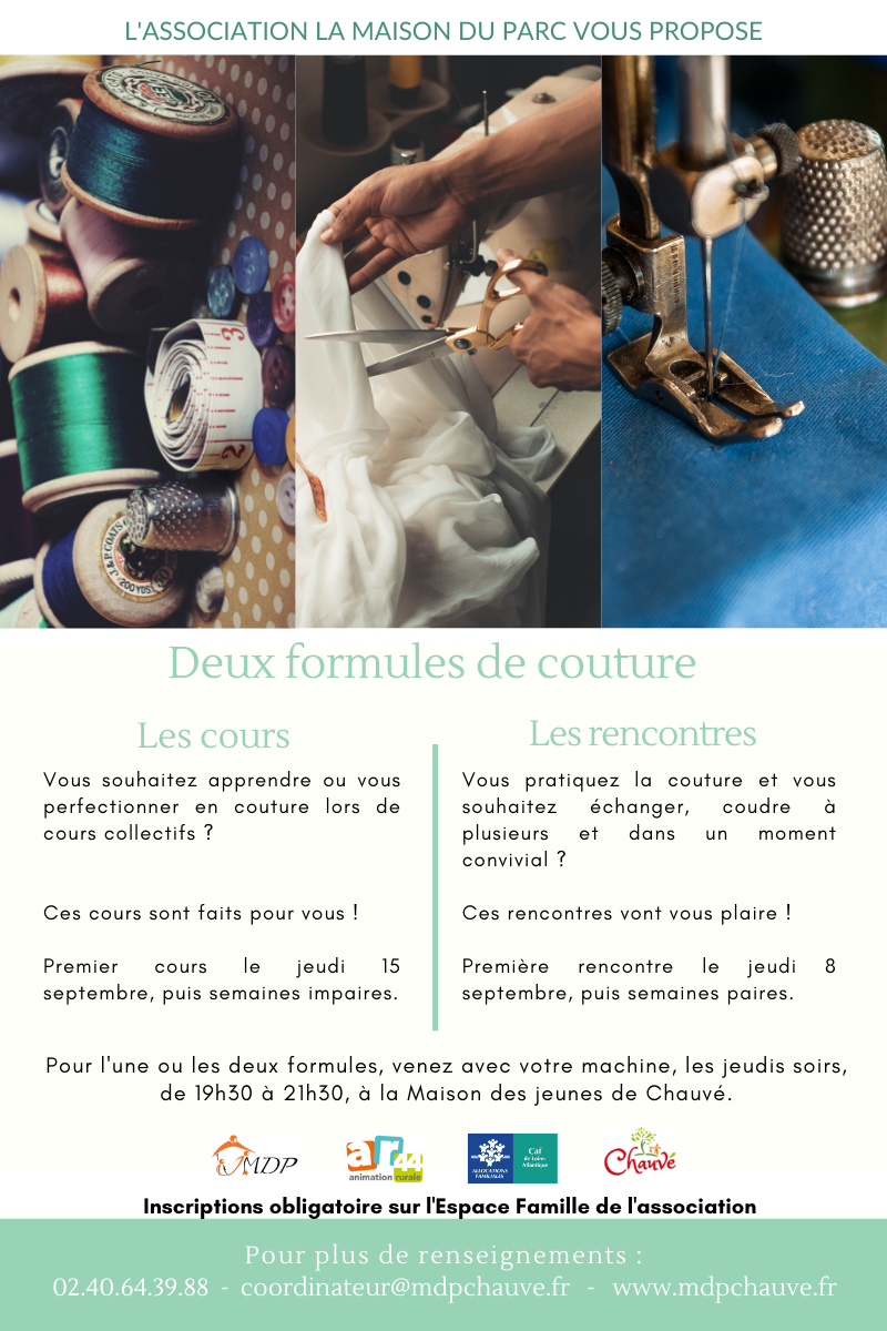 Les cours de couture sont reconduits pour la saison 2022/2023 et la formule est complétée par des « rencontres couture », pour simplement se retrouver, discuter, coudre et s’entraider. Si vous faites parti des passionné(e)s de couture, vous pouvez choisir l’une ou l’autre des options… ou les deux.