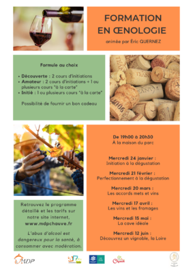 Vous souhaitez offrir un cadeau original pour les fêtes de fin d’année ? Vous en avez marre de choisir votre vin juste parce que l’étiquette est jolie ou parce qu’il est cher et donc, sûrement, bon ? Vous êtes déjà amateur et aimeriez approfondir vos connaissances ? La maison du parc vous propose de nouveaux cours d’œnologie.