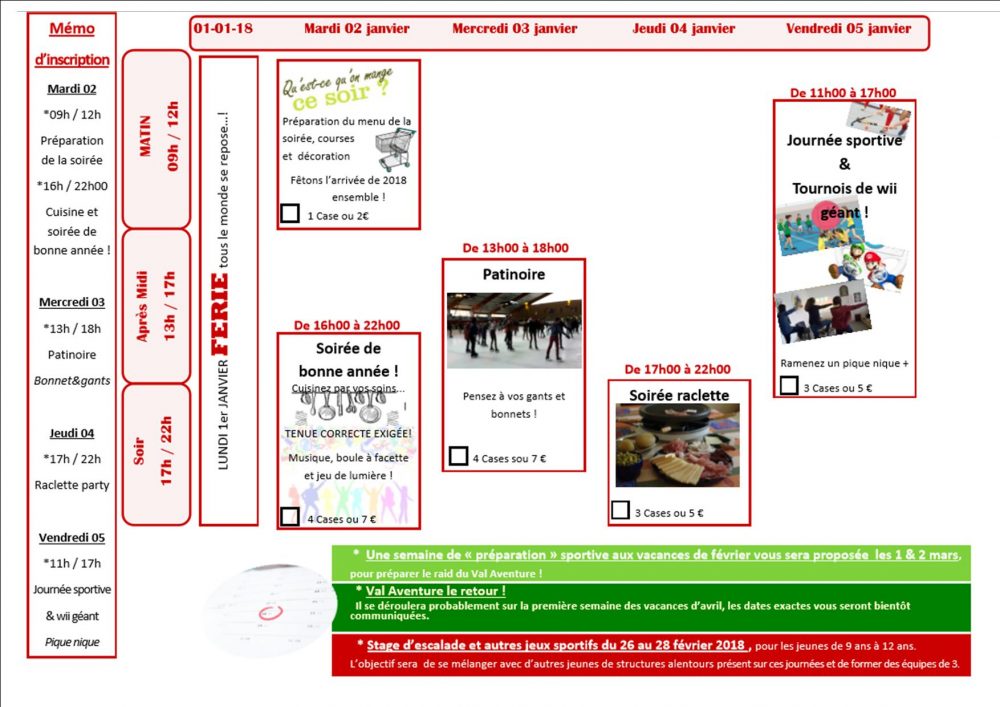 Ces vacances se dérouleront du 02 au 05 janvier 2018 et un programme très riche vous attend !