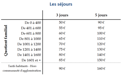 Les inscriptions de vos enfants au séjour se feront directement via votre espace personnel en ligne. Vous retrouverez le reste des informations nécessaires dans notre règlement de fonctionnement spécifique aux séjours.