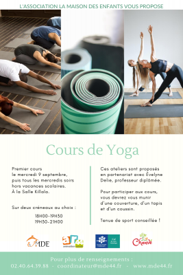 Les cours de Yoga sont reconduits pour la saison 2020/2021. Laissez vous tenter par cette pratique ancestrale qui contribue à l’épanouissement des différents plans de l’être humain : physique, psycho physique, mental et spirituel.